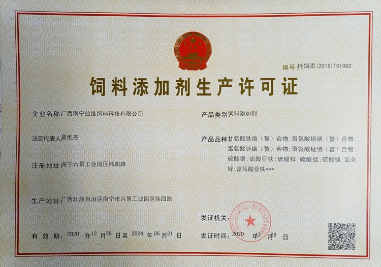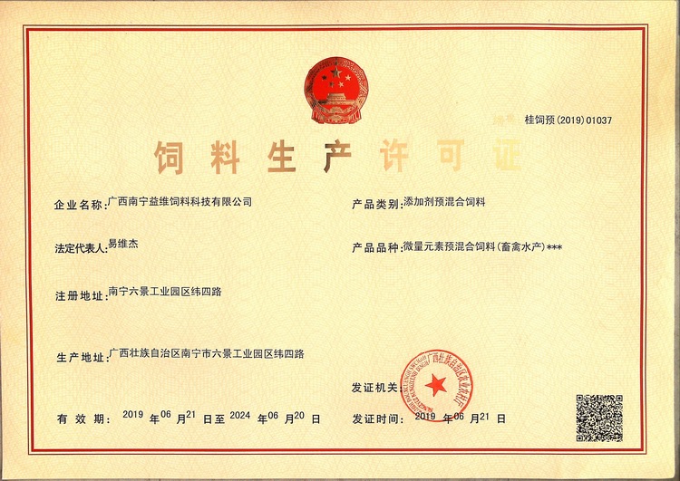 益維—添加劑預混合飼料生產(chǎn)許可證